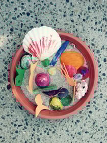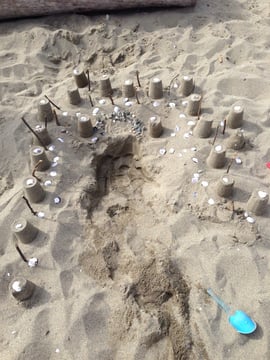 -20 towers, 20 sticks, 20 stones, 40 shells and lots of sand !!
