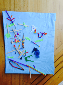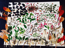 -with friends collected 50 of twenty different things around the garden, dried them and then glued onto painting board