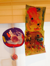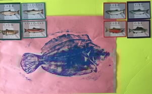 -did arts and crafts including 'fish prints'