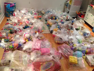-toys were washed and sorted into 100 toy sets for children between the ages of 0.5 to 5 years old